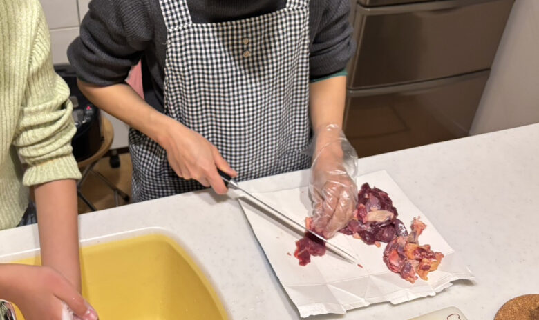 キッチンでお子様と一緒に楽しそうにカモと向き合う意外な一面を見て、お客様も「本当に嬉しかったです」と語ってくださいました。