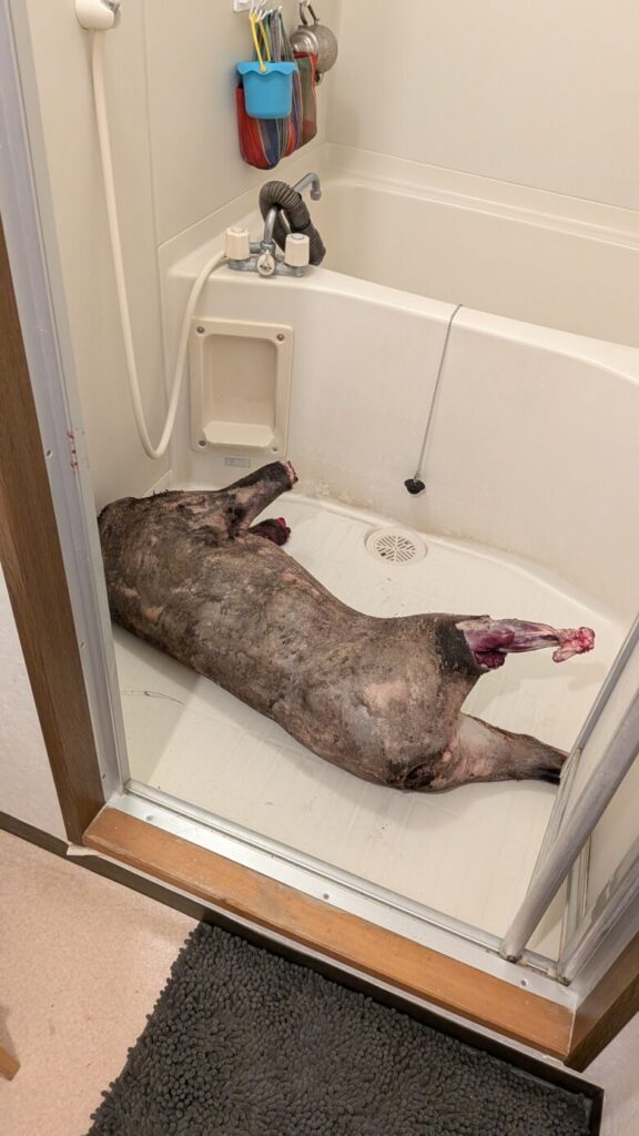 ■ 最後の罠で…巨大イノシシ! 時間との勝負のスピード解体