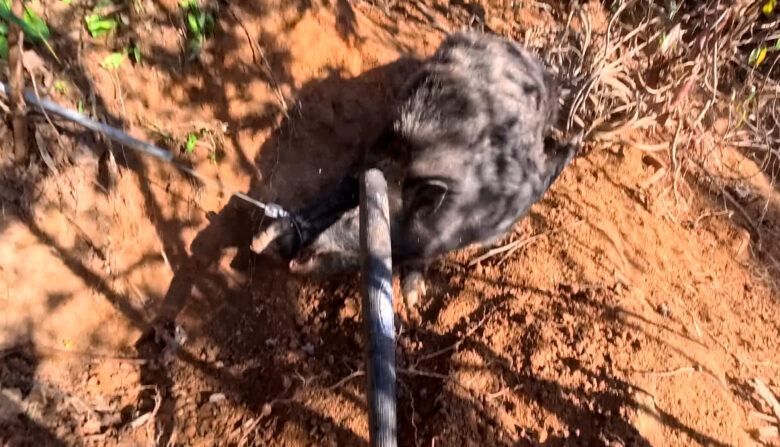 この日の前日、私は保定具(アニマルポール)を修理していましたが、そのときワイヤーの長さをケチって作っていました。