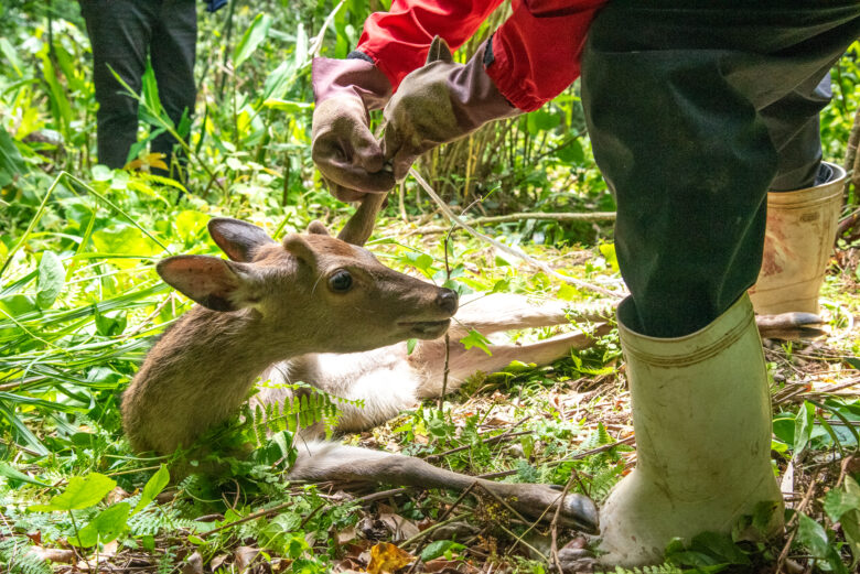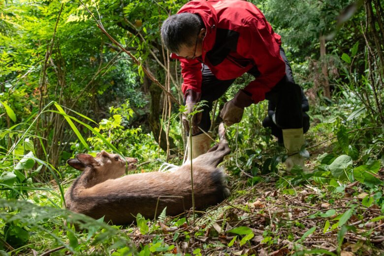 捕獲時の安全な対応、そして確実な止め刺しの手順までのプロセスを学びます。