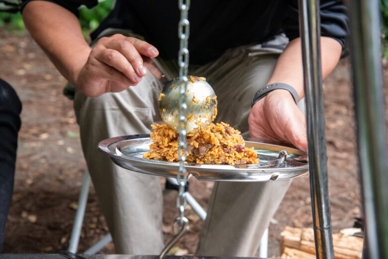 全7回の講習・ツアーには、毎回特別なジビエランチをご用意します。味わえるのは、イノシシやシカといった王道のジビエはもちろん、市場には出回らないアライグマやアナグマ、そしてカモやヒヨドリといった鳥類まで。大自然の中で味わうキャンプスタイルの料理は格別です。